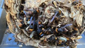 ・ご自宅の敷地内の庭木の中に出来た、蜂の巣駆除を、山口県内で施行致しました。