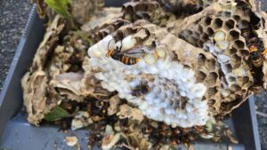 ・ご自宅の1階軒先下側部分に出来た、蜂の巣駆除を、山口県内で施行致しました。